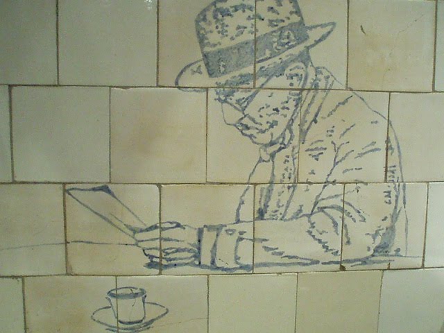 Esta é a minha homenagem à Casa Fernando Pessoa, que acabou por colocar online a Biblioteca do mestre de todos nós, o poeta-filósofo ou o filósofo-poeta. Sempre uma constante redescoberta a leitura dos seus textos, aqui apresento o Pessoa da minha biblioteca, que ocupa, nada mais nada menos, do que duas estantes, e ainda me faltam alguns! A Casa, óbvio, deve-os ter todos e muitos mais. A minha próxima ida a Lisboa é visitá-la. Está combinado, meu caro Pessoa. Quando te fui visitar na Brasileira o questionaste, Não vais a minha casa?, e eu, Preferi vir ver-te aqui, na Brasileira, tomar café contigo, Tás desculpado! Mas vi a casa, uma delas, a no Largo da Graça, a famosíssima, Ah, essa, dos republicanos, Sim, essa, Tá bem, tás desculpado, Ainda bem, obrigado. Fica, então aqui, o meu registo, dos teus livros e dos teus amigos e dos que falam de ti e dos teus amigos, com esta não esperavas, as capas dos livros, claro, Olha que o Camilo não gostou lá muito, andou aí a fazer queixinhas, ficou ciumento, Ah, tá bem, eu depois faço-lhe algo igual, um dia destes, É melhor, senão não me acompanha à Brasileira e à Arcada, vai ao mulherio, o homem é terrível, aqueles olhos, aqueles olhos..., depois é os bailes, o teatro, o homem não pára, Mas não tem razão de queixa, sempre falo dele aqui, Pois, É, Quer atenções para ele, mas agora és tu caro Pessoa, dseixamos o Camilo. Bom, mas ficamos catitas os dois na foto, não achas, o dr. sá marques até tirou bem, Tirou, tirou, honra lhe seja feita, E lá estás com aquele sorriso a questionar das leituras, Sim, andas sempre atento, agora temos a tua biblioteca pessoal que pode ser consultada, É verdade, tens muitos que gostas, Pois tenho, já lá estive a ver o Chesterton, o Bacon, o Mário de Sá-Carneiro, Ah, o meu Mário, fiquei noutro mundo quando recebi a última carta dele pensando que ainda vivia e já se tinha suicidado, não viu a luz, não viu a luz, Não tinha óculos, Tinha, não gostava de os usar, os meus óculos, dá aí..., Olha, e que tal um café, Vamos lá, Vamos lá, Sim, Vamo-nos descobrir, No Mundo, no mundo...