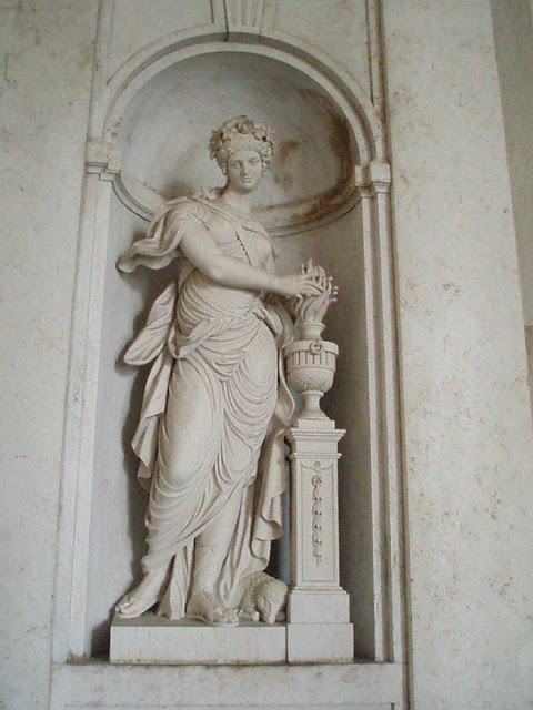 Estas são esculturas representando as mais variadas virtudes que estão no Palácio Nacional da Ajuda, em Lisboa. Do escultor português neoclássico João José Aguiar (1769-1841), esculturas realizadas entre 1819 a 1830, temos as virtudes da lealdade, providência, clemência, acção virtuosa, anúncio bom, perseverança, constância e consideração. Do escultor do rocócó em transicção para o neoclassicismo, temos Joaquim Machado de Castro (1731-1822), com as esculturas concelho, generosidade e gratidão de 1817. Ainda faltam identificar algumas.